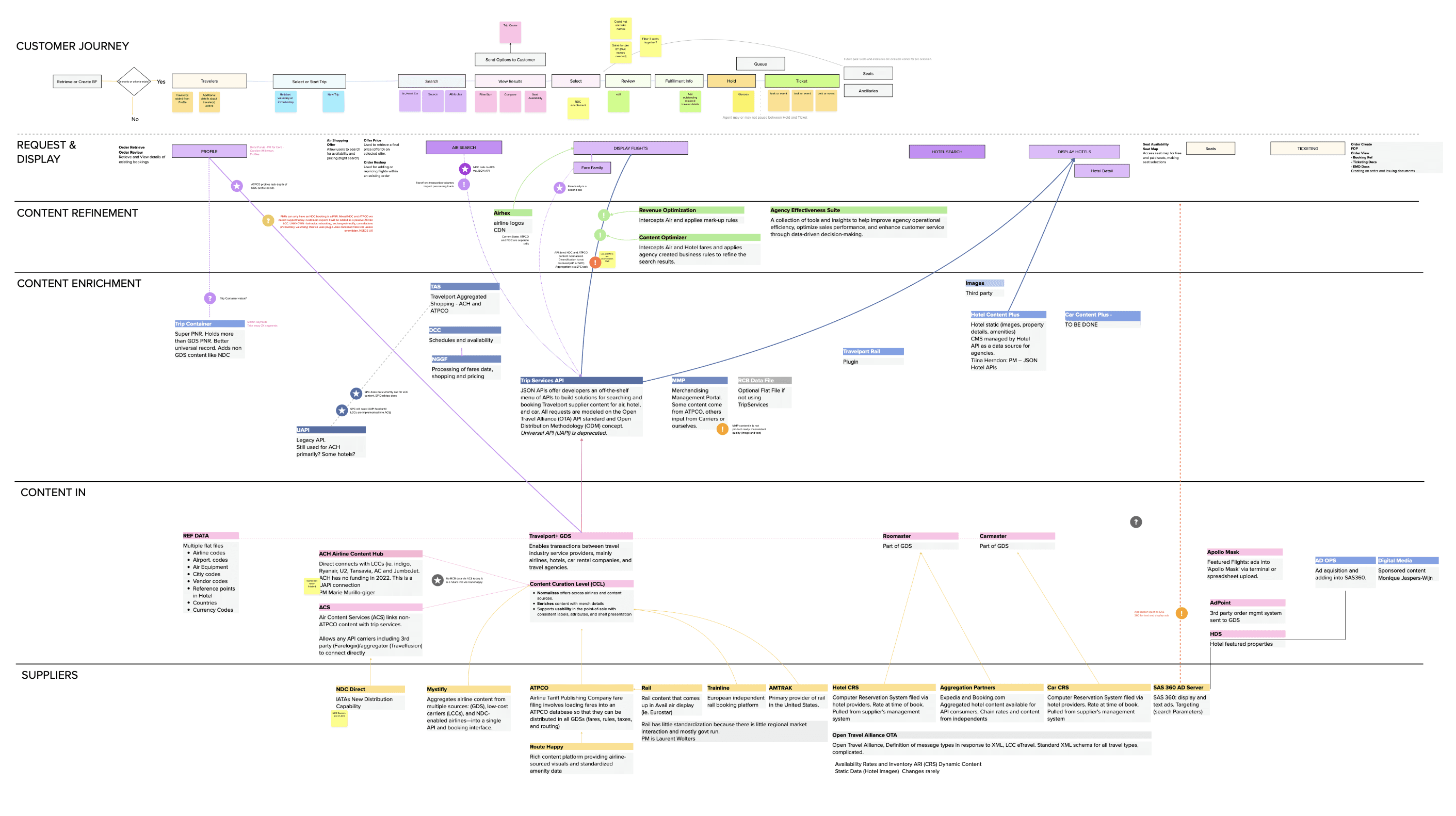 Next, I began mapping the end-to-end customer journey alongside the complex web of suppliers, APIs, and enrichment layers that power it. This systems-thinking approach revealed how many invisible dependencies sit behind a single booking, and how design decisions ripple across airlines, agencies, and travelers.