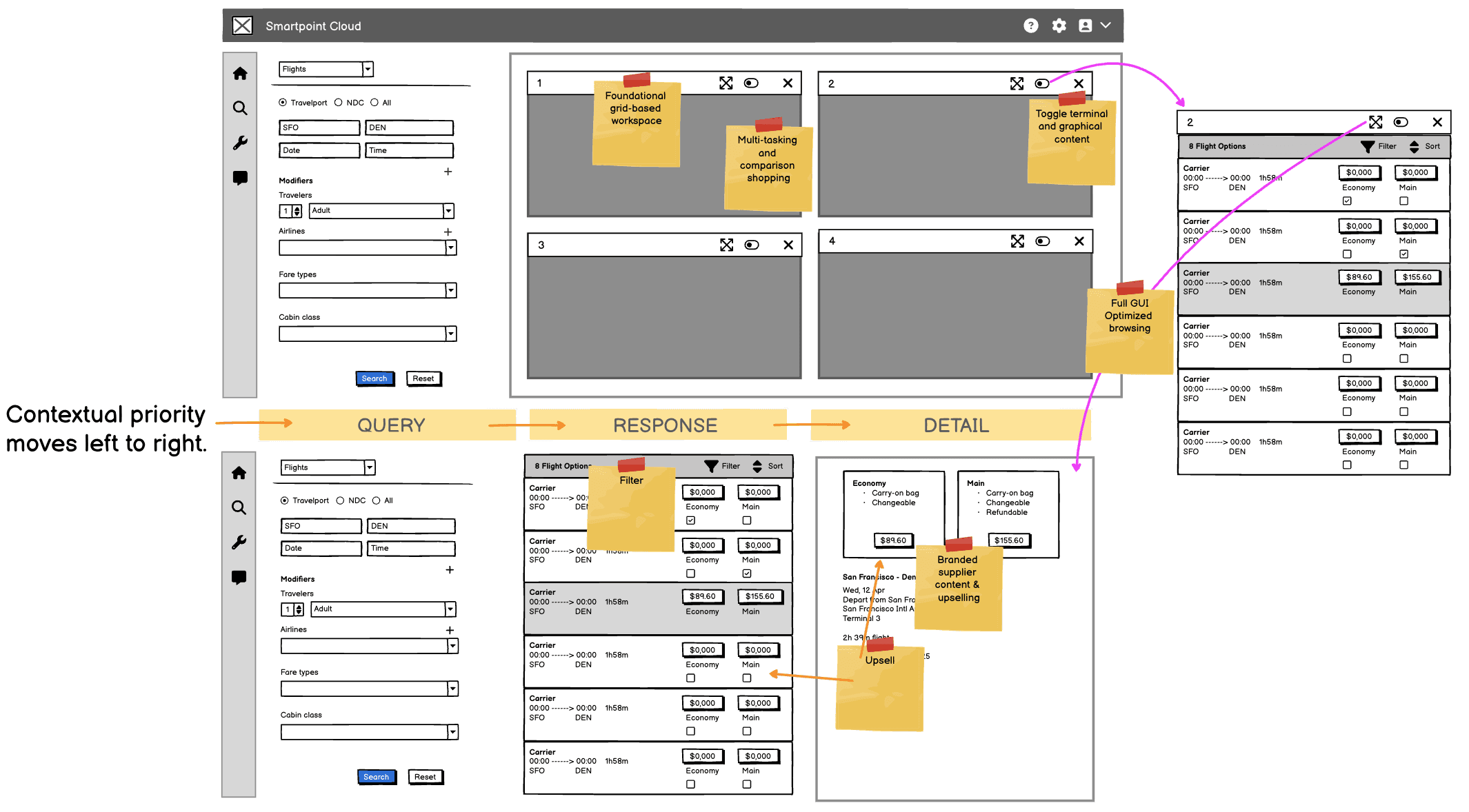GUI-based flight shopping – envisioning how richer content like maps, seatmaps, and fare visuals could improve the booking experience.