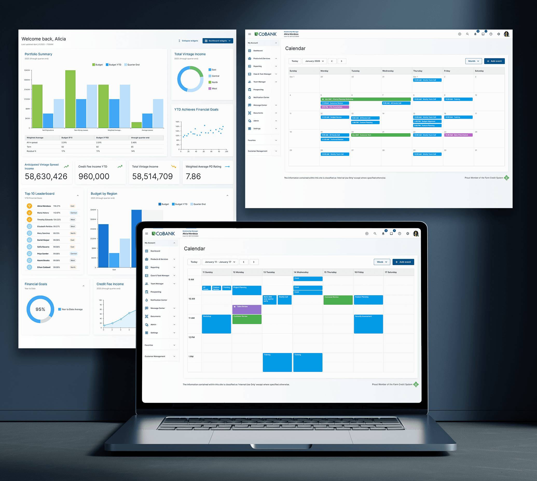I designed the UI for internal relationship management dashboards and calendar experiences, bringing together multiple enterprise system integrations into a single, cohesive portal. The work focused on simplifying complex, cross-platform workflows and presenting critical information in a clear, actionable way to support relationship managers in planning, coordination, and day-to-day decision-making.