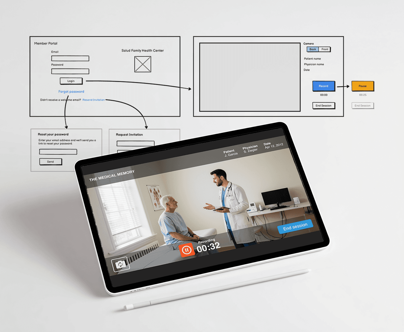 I designed a native Android app and an online portal during the company’s incubation phase to test key hypotheses and validate market fit. Medical Memory allows clinicians to record patient visits, giving patients secure access to those recordings through a protected portal. This helps reduce repetitive follow-ups, improves recall of medical discussions, and enables patients to share visit information securely with loved ones.